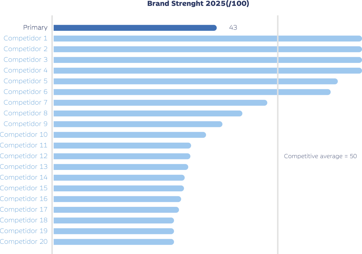 Datos de Fuerza de Marca de una compañía en comparación con sus principales competidores. Elaboración propia.